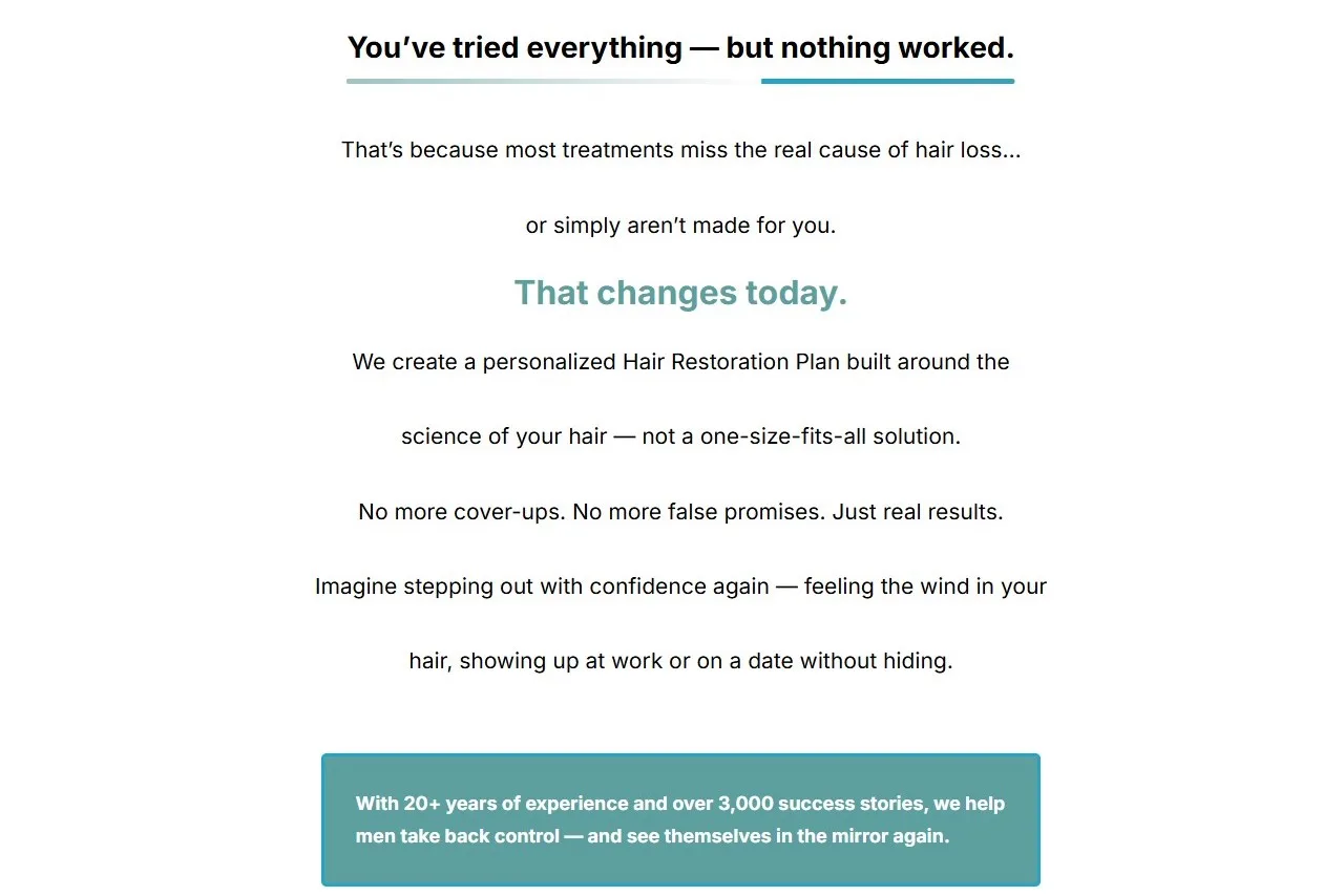 we’re not just restoring hair — we’re restoring hope, identity, and a renewed sense of self. Let us help you write this next chapter of your story — one full, healthy strand at a time. Over time, you’ll return for follow-up sessions, where we’ll monitor your progress, make any necessary adjustments, and support your maintenance routine. Our goal is to get you not just growing hair again — but feeling confident, supported, and empowered throughout the entire process.