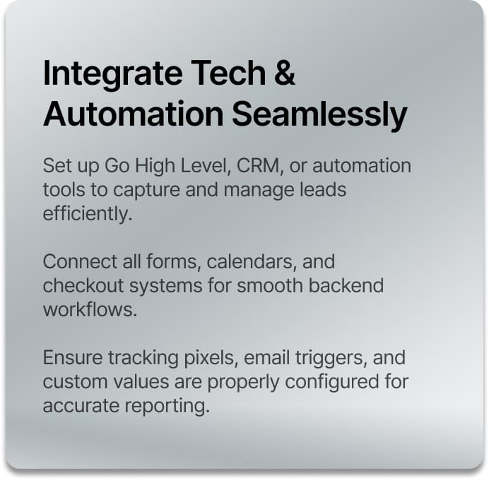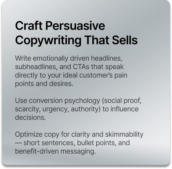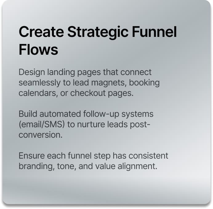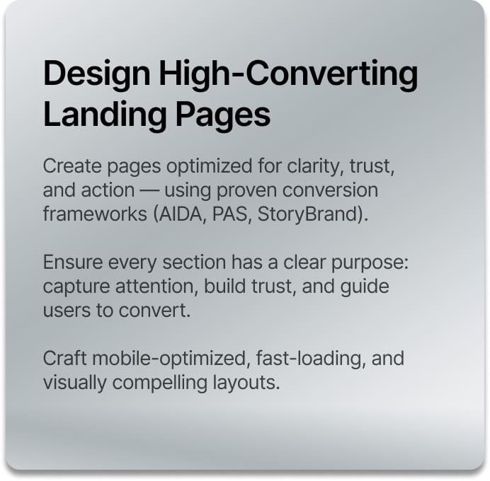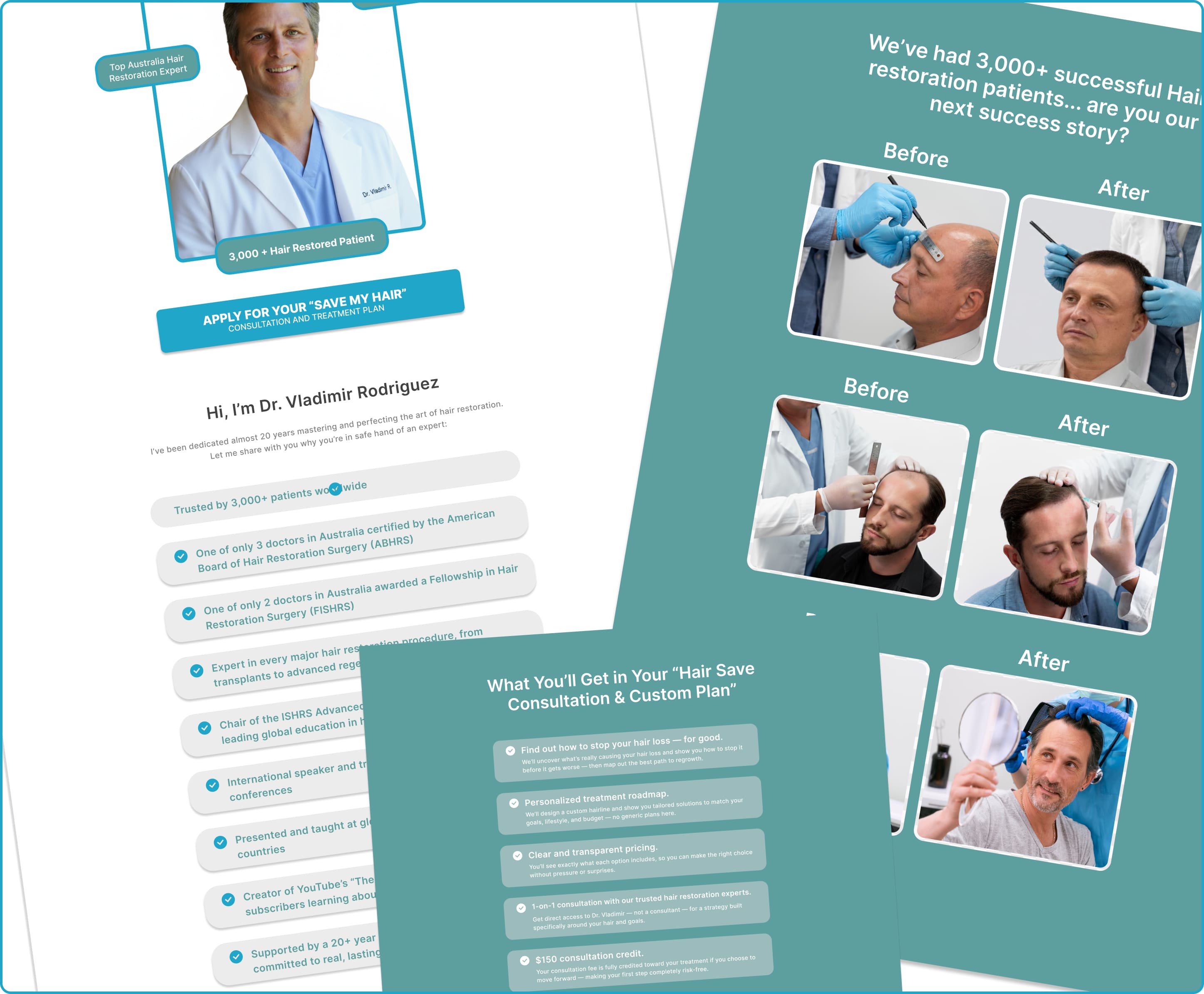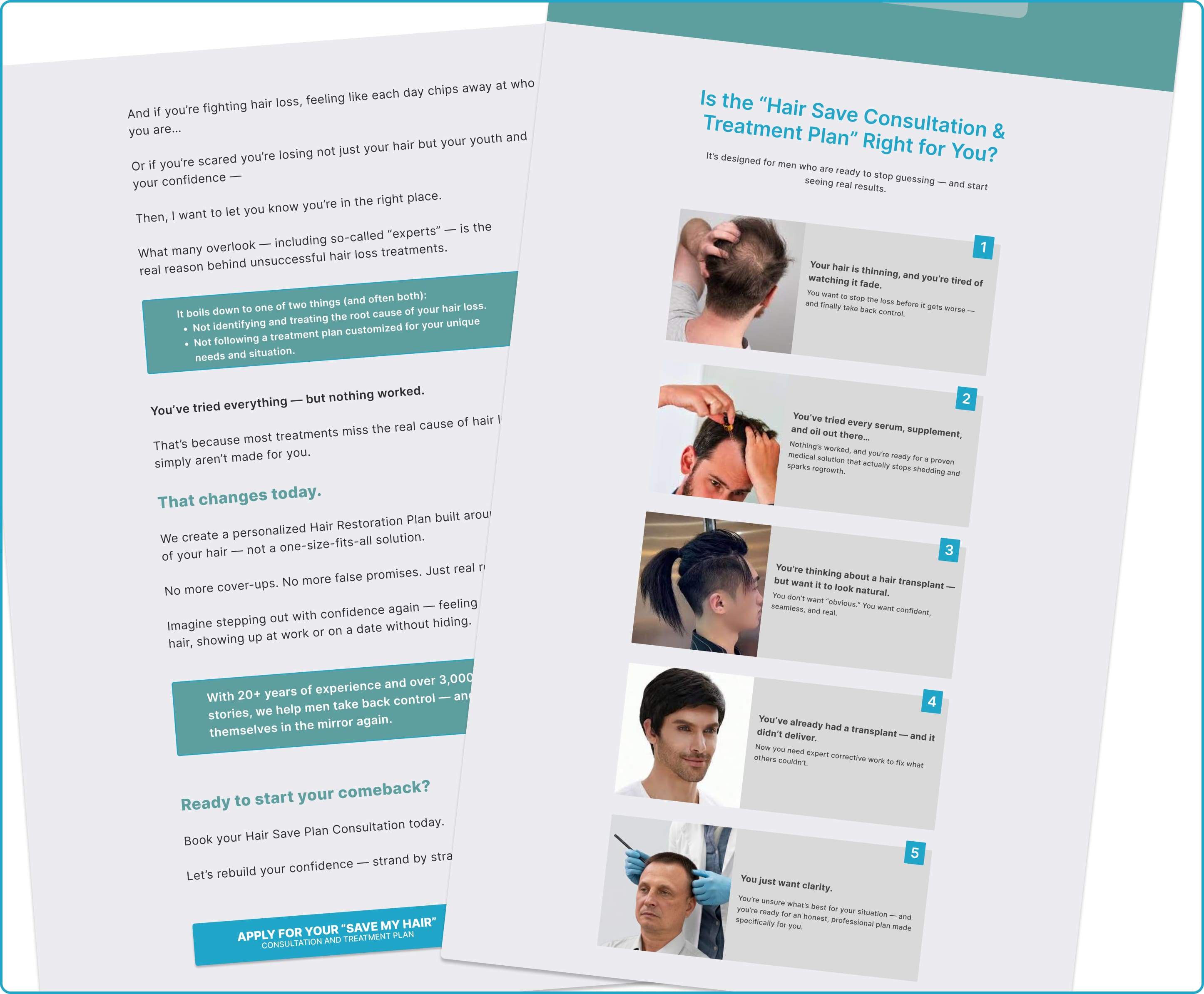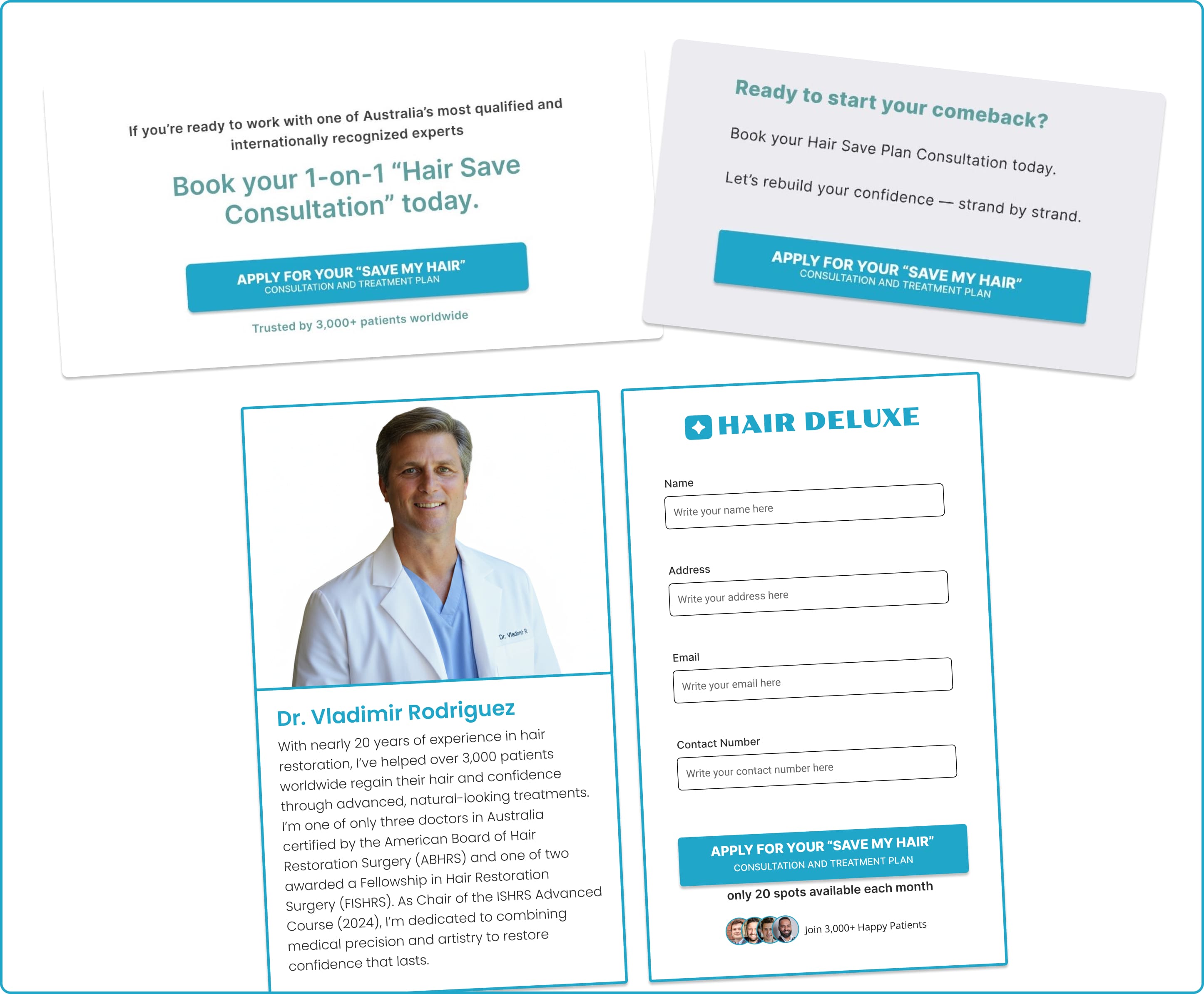 Short form (Name, Email, Phone) Booking calendar Order form with secure payment badges Final CTA reminding them of the value