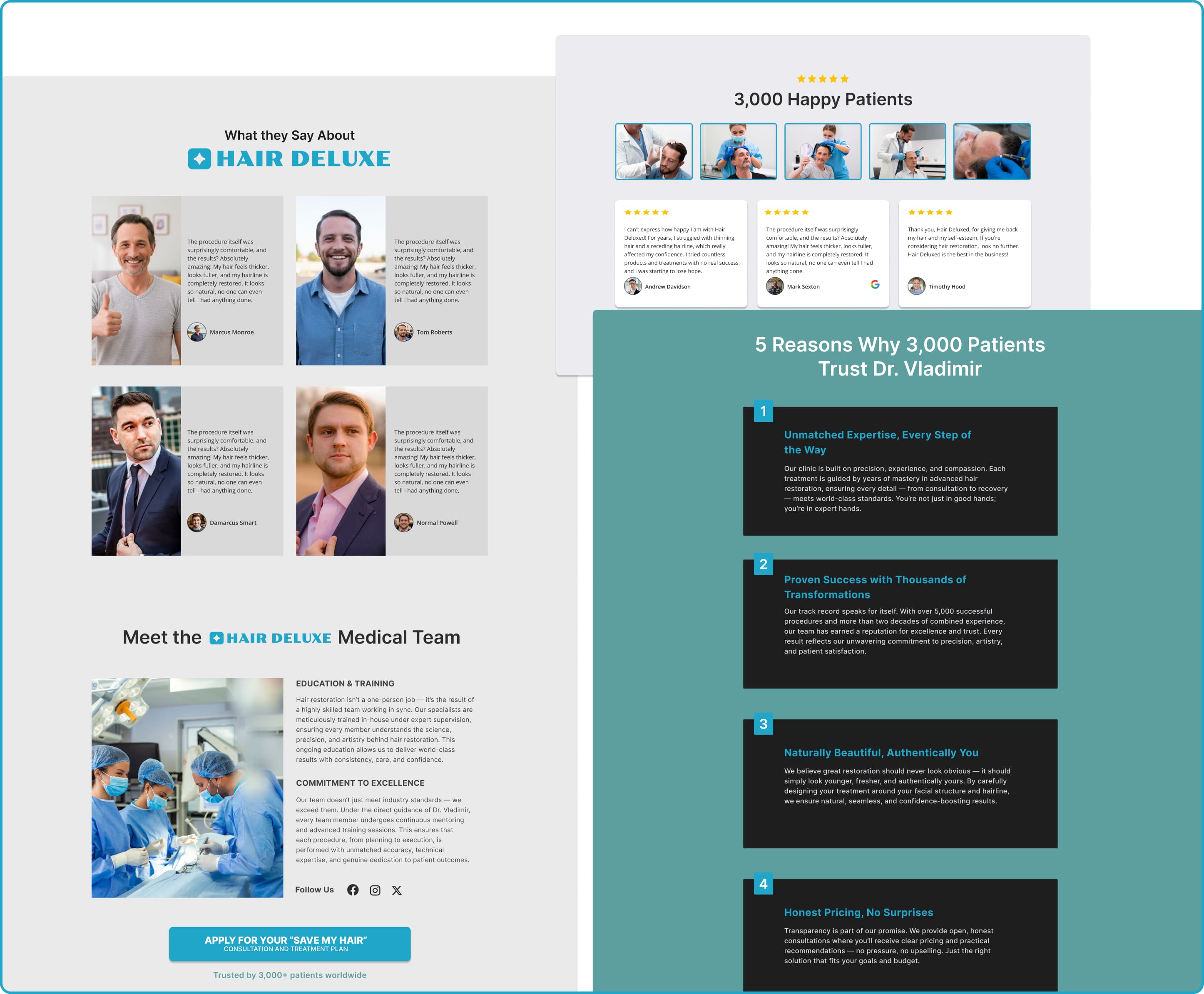 Back up your claims with real evidence that builds trust. Use testimonials, before-and-after photos, certifications, and patient success stories to show you deliver real